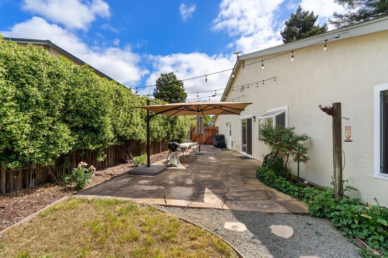 Welcome to 316 Durham Court in the charming city of Benicia! This beautifully maintained single-story home offers 4 spacious bedrooms and 2 full bathrooms, perfectly blending comfort and functionality. Situated at the end of a quiet, flat court, the property sits on an expansive 12,000+ square foot lot, providing privacy and plenty of room to enjoy. Inside, you'll find dual pane windows throughout, filling the home with natural light while enhancing energy efficiency. The inviting living room is equipped with built-in ceiling speakers, creating the perfect setting for entertaining or relaxing. The tastefully remodeled kitchen features abundant cabinet storage and a convenient sliding door that opens directly to the side patio ideal for seamless indoor-outdoor dining and hosting gatherings. Step outside to discover multiple outdoor living spaces, including two backyard patios and a charming front courtyard patio, offering versatility for entertaining or quiet retreat. The side yard is truly a gardener's dream, complete with multiple raised planter beds and a variety of fruit trees, ready for your personal touch. This exceptional property combines a prime location, generous lot size, and thoughtful upgrades an opportunity you won't want to miss!