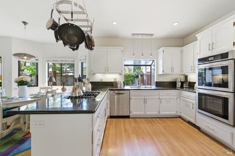 Welcome to 117 Madrid Way, a beautifully appointed 4-bedroom, 3-bathroom home nestled in the magical Mission Oaks neighborhood of Sonoma where charm, community, and California wine country living come together effortlessly. From the moment you arrive, you'll be captivated by the curb appeal of the cheerful front yard and welcoming front porch framed with gorgeous blooming rose bushes. Step through the front door and be greeted by soaring ceilings in the living room, flooding the space with natural light and an airy sense of grandeur. The heart of the home is the updated kitchen, thoughtfully designed for both everyday living and effortless entertaining with granite counters, stainless steel appliances, double ovens, and a bay window over the sink overlooking the backyard. Gather around the fireplace in the family room on cool Sonoma evenings, or retreat to the generous primary suite a true sanctuary featuring two spacious walk-in closets and its own cozy fireplace. The remodeled primary bathroom feels like a private spa, with a soaking tub and luxurious finishes that make every morning and evening a rejuvenating experience. Spread across over 2,700 square feet, the home also includes a formal dining room, a full bedroom and bathroom on the main level, and a separate laundry room, providing all the space and flexibility for modern life. The attached three car garage adds convenience, while the backyard is an entertainer's paradise complete with a sport court and in-ground basketball hoop, perfect for weekend fun. Just steps from the neighborhood park, it's the best of small-town charm with the bonus of easy access to world-class wineries, restaurants, and the historic Sonoma Plaza. This is a rare opportunity in one of Sonoma's most beloved communities. Homes like this don't last!