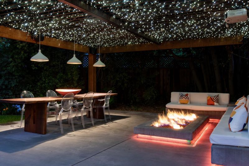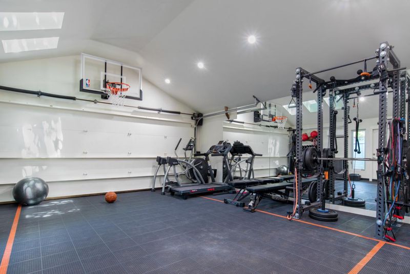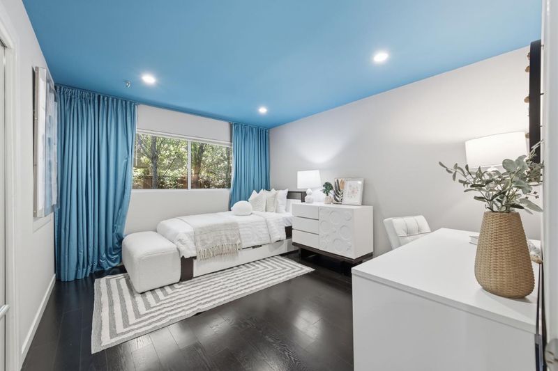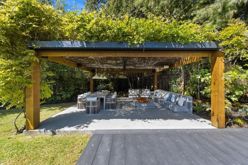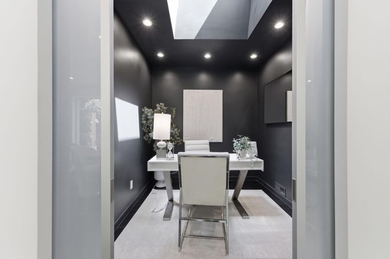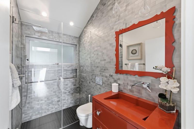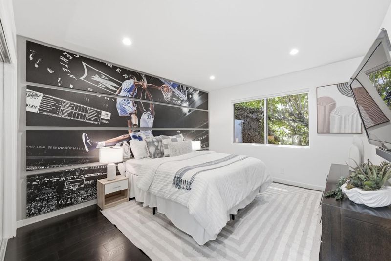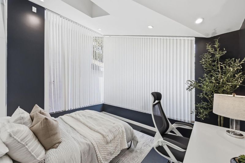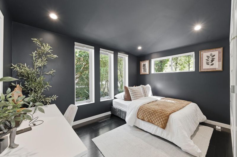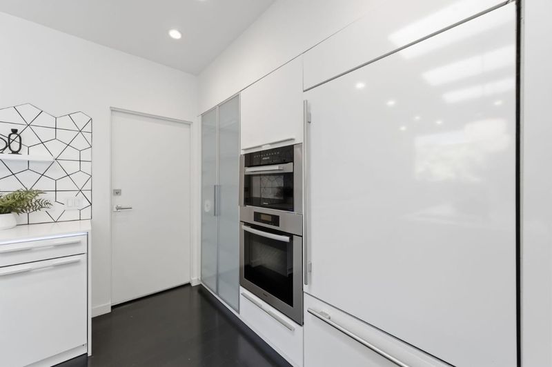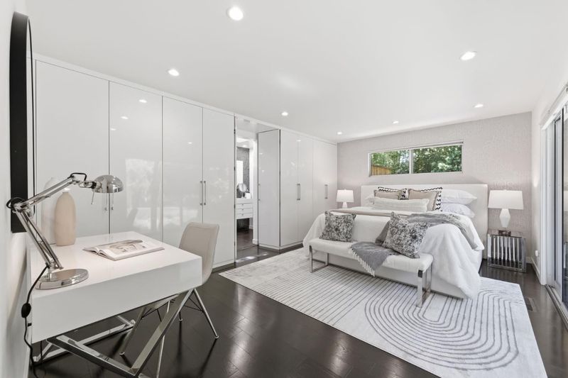 This exceptional Crescent Park home, blocks away from DownTown, pairs striking contemporary architecture with visually sophisticated, livable interiors. A glazed foyer and vivid front door, introducing lofty, light-filled spaces, leading to a spacious mudroom and a library-lined hall. The main office offers high ceilings, large window facing sculptural front yard & Murphy bed for guests. The great room boasts a fireplace wall w/ custom display niches, centers on a built-in media and wine display wall and opens through expansive retracting glass doors to the backyard. The sleek kitchen offers multiple skylights, custom cabinetry, oversized island & top of the line appliances. Beautiful dark hardwood floor throughout. Additional office off of the great rm. The spacious primary suite w/ sliding doors leads to the backyard. Spa-like bath with dual vanity, mosaic detailing, skylit ceiling & oversized glass shower w/ side jets. Three additional bedrms are each distinct and expressive, two baths finished with a designers eye for material. Fully outfitted gym, large laundry rm. Outside, the stunning pergola features a fire pit, built-in cement seatings w/ suspended lighting. In-ground lighting traces the deck. The backyard features wooden spa structure, kids playhouse and a trampoline.