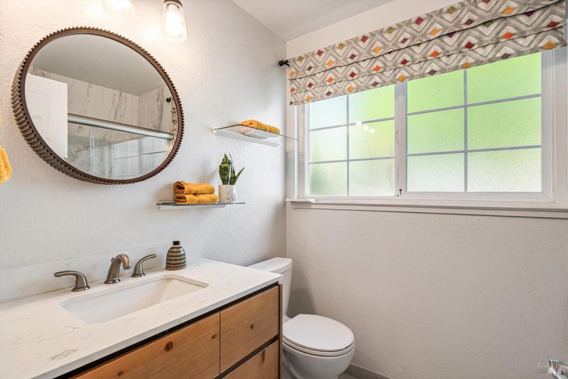 Located in the heart of Napa Valley, this single-story home is just minutes from Alston Park, Dry Creek Park, and the Los Flores Community Center. The open-concept floor plan with vaulted ceilings is perfect for everyday living and effortless entertaining. The updated, light-filled kitchen offers quartz countertops, stainless steel appliances, and an under-sink water filtration system. The living room features an electric fireplace that can easily be converted back to wood-burning. The primary bedroom is an ensuite with a remodeled bathroom, and the hall bath has been updated as well. Among the many improvements: a newer water heater, Nest thermostat, replaced covered patio roof, additional insulation above the garage, and repaved driveway and walkways. Additional amenities include a newer washer and dryer, attic vent fan, high-efficiency heater, and wood slat blinds on most windows. True California indoor-outdoor living comes alive in the landscaped front and back grounds, designed for low-maintenance enjoyment. The front courtyard is a special place to savor your mornings or evenings, featuring a water-conscious palette that blooms with texture and color throughout the seasons a curated mix of ornamental grasses, lavender, rosemary, catmint, ceanothus, California fuchsia, a strawberry tree, and more. The covered patio is a lovely spot to dine and enjoy nature. Whether you're seeking a primary residence or a Napa Valley vacation retreat, this home places the best of the Valley at your doorstep acclaimed restaurants, world-class tasting rooms, and the scenic Napa River trail while offering the tranquility of a true neighborhood escape.