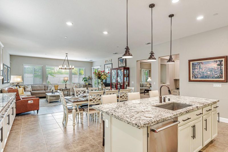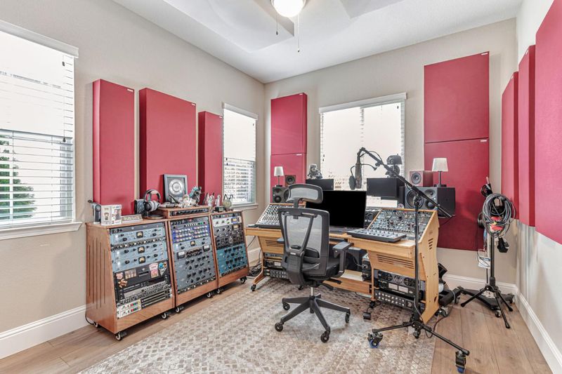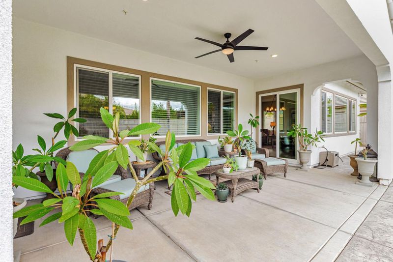 Welcome to your dream home. A stunning single-story retreat featuring 4 spacious bedrooms with walk-in closets, 3.5 luxurious baths, and a fully finished, insulated 3-car garage, all on a beautifully landscaped 12,678 Sq. Ft. lot with no HOA fees. With 3,264 Sq. Ft. of elegant living space, this home offers soaring ceilings, central heating and A/C, and ceiling fans. The chefs kitchen is equipped with a double range oven, 36" five-burner stovetop, in-cabinet microwave, expansive counters, and a large walk-in pantry. The grand primary suite features two oversized walk-in closets, a spa-like bath, and private sliding glass door access to the backyard. Enjoy seamless indoor-outdoor living with a covered lanai, built-in gas line, tropical landscaping, and a backyard with both cemented and grassed areas surrounded by resort-style palm trees. A custom courtyard entrance welcomes you with wrought iron gates, decorative pavers, and a Wi-Fi-controlled fountain. Smart home upgrades include WeMo-controlled landscape lighting, Wi-Fi-enabled sprinklers, a water softener, and a hardwired alarm system for peace of mind. This home is the perfect blend of luxury, comfort, and modern convenience.