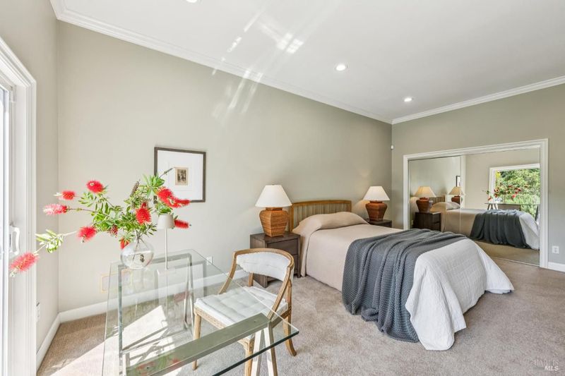 Santa Barbara-style home with grand scale throughout and A+ floor plan ideal for entertaining and everyday living. Featuring four generous-sized bedrooms over 4,436 sq ft (per tax records), including a primary suite with walk-in closet, fireplace, envious spa-like bathroom, romantic balcony and views in multiple directions. Two additional bedrooms, full bath and large laundry room are located on the same level as the primary, while a fourth bedroom and full bath with walk-in shower are located on the main living level. The hub of the home features a large-scale and sophisticated kitchen with ample counter and storage space, breakfast nook that opens to a sunny deck, and welcoming family room with fireplace and views. Dine al fresco among oak trees on your patio with views or host family and friends in your formal dining room adjacent to the grand living room. High ceilings throughout and Montecito-inspired architecture make this home both charming and chic. Complete with 3-car attached garage with home gym and Tesla batteries. Spanning over 1 acre lot per tax records, the property is located within the sought-after Regency Estates, which offers privacy and serenity. The beautiful grounds - which also include a low-maintenance turf area - are surrounded by mature oak trees, oleander, rose bushes & views of the open space and hillsides that makes Marin so desirable and beautiful. Miles of trials mere steps or pedal strokes away, with a public trail access via Heatherstone Drive to Ponte Fire Road. Located within the Miller Creek school district and close to Marin Country Club. Quick Highway 101 access makes for easy commute to SF or Wine Country.