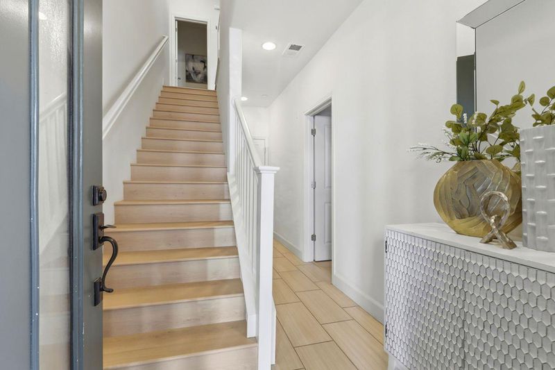 Welcome to comfort and elegance! This home offers approximately 1,730-square feet of living space with three bedrooms and three and a half baths! One bedroom with en-suite bath is located on the ground floor, while level 2 offers an open floor plan boasting a living room with balcony access, a dining area, a half bath and a kitchen with granite counters, a large island and stainless-steel appliances, including a gas cooktop. On the third floor sits the primary bedroom and junior suite. This home also has indoor laundry, central A/C and a two-car garage. Complex has a swimming pool and is next to Central Park. Easy access to the Apple Campus, shopping, schools and Kaiser.