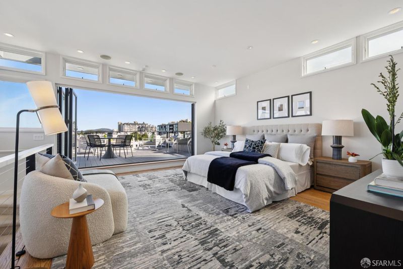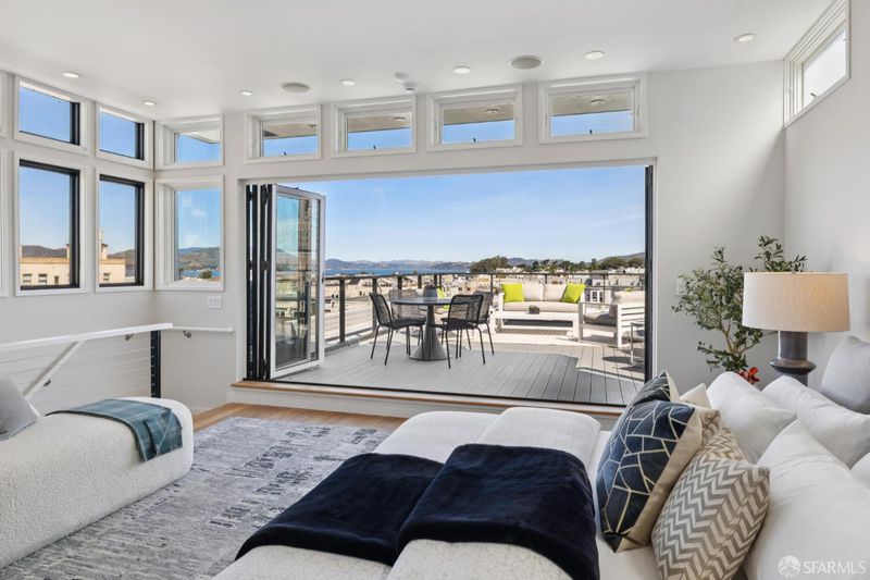 Stunning two-level Pacific Heights view condo, beautifully remodeled with extensive upgrades throughout. This bright, inviting home features a gourmet kitchen with a Viking range, Bosch dishwasher, and a brand-new LG refrigerator with ice maker and water dispenser, ideal for everyday living and entertaining. The upper level offers a spacious primary suite with a beautifully renovated bath, a generous walk-in closet, and Golden Gate Bridge views. A wall of accordion doors opens to an impressive walk-out deck, creating seamless indoor-outdoor living perfect for relaxing or hosting. The deck is also accessible via an exterior staircase. Major improvements include a fully updated electrical system, a new roof, a new deck, a new sewer line, and multiple renovated bathrooms. Additional highlights include new windows, California Closets in every bedroom, an in-unit washer/dryer combo, a dedicated washer/dryer in the garage, and two-car parking. Enjoy a shared patio garden and a prime location just one block from Union Street shops and dining, with easy access to tech shuttle routes.