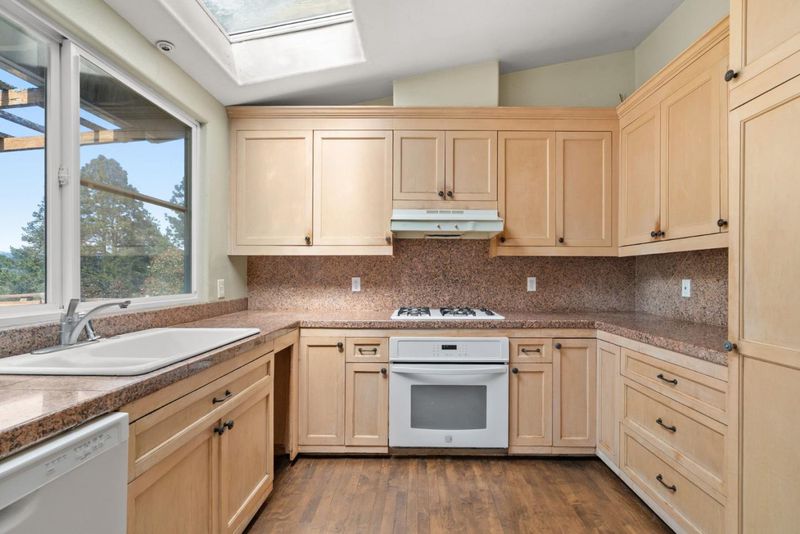 Cooktop - Gas, Countertop - Granite, Dishwasher, Microwave, Oven - Gas, Refrigerator, Skylight