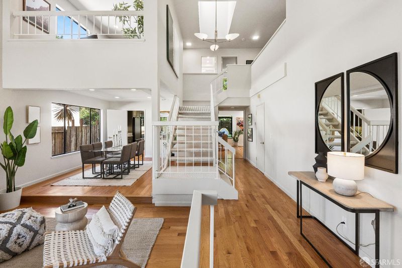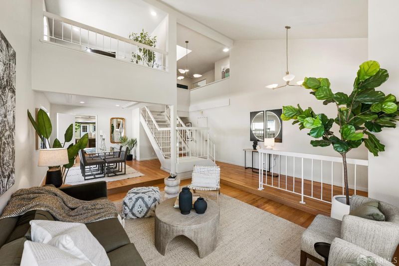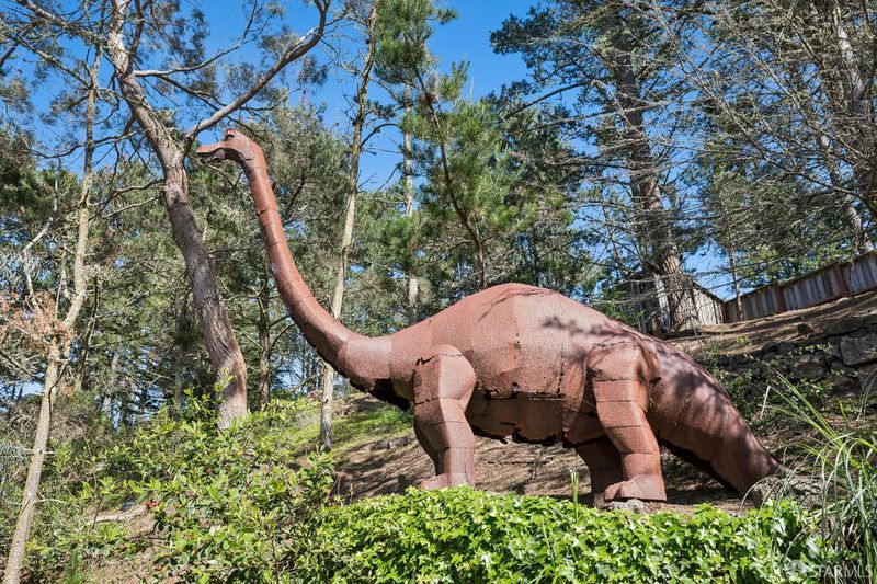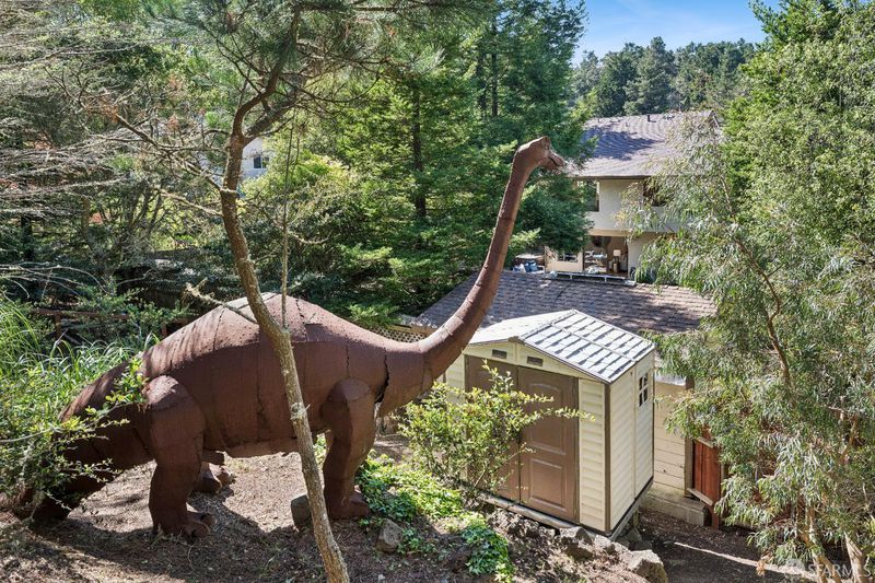 Welcome to the Dinosaur House in San Bruno, a rare retreat in the Pacific Heights neighborhood where space, light, and tranquility come together beautifully. Nestled on a private and serene 12,538 sq. ft. lot at the end of a quiet cul-de-sac, this expansive home was built by Ponderosa Homes in 1980, blending functionality with modern comfort. With 4 spacious bedrooms, 2.5 baths, and 2,810 sq. ft. of living space, this residence offers peaceful verdant outlooks and a sense of openness throughout every room. Step inside to a bright, inviting formal living and dining area featuring a vaulted ceiling, skylight, and large window that fill the home with natural light. The updated kitchen anchors the open floor plan, boasting new quartz countertops, stainless steel appliances, and a walk-in pantryperfect for both daily living and entertaining. A cozy fireplace and sliding glass doors connect the great room seamlessly to the expansive backyard, where mature trees, a well-kept flat lawn, and terraced gardens create a private oasis. Enjoy morning coffee or evening gatherings on the patio, soak in the hot tub, or unwind in the terraced areas surrounded by greenery and birdsong, and a dinosaur sculpture by. The primary bedroom suite features a generous walk-in closet, en-suite bath with dual vanities, soaking tub, and separate shower. Two additional bedrooms and a massive flex room and dedicated loft offer flexibility for guest rooms, a home office, or creative studio space, media space, gym, or additional lounge. Hardwood floors, crown molding, and recessed lighting add warmth and sophistication throughout. Practicality meets comfort with a two-car garage, extra storage, and a dedicated laundry room. The property's mature trees and surrounding greenery offer exceptional privacy, making it feel worlds away while still being close to everything. Located near Ponderosa Playground, Milagra Ridge Park, and scenic hiking trails, the home provides easy access to Skyline College, Hwys 92, 280, and 101, as well as SFO Airport and BART for convenient Bay Area commuting. Top-rated Portola Elementary School and neighborhood shops and restaurants are just moments away. A truly special property, this Pacific Heights gem combines the calm of a private sanctuary with the convenience of city livinga perfect place to grow, entertain, and relax amid sweeping green views and timeless tranquility.