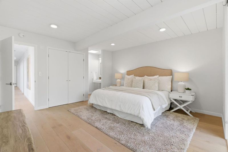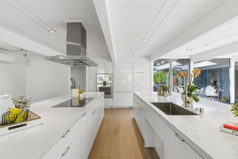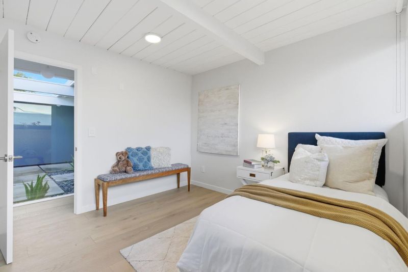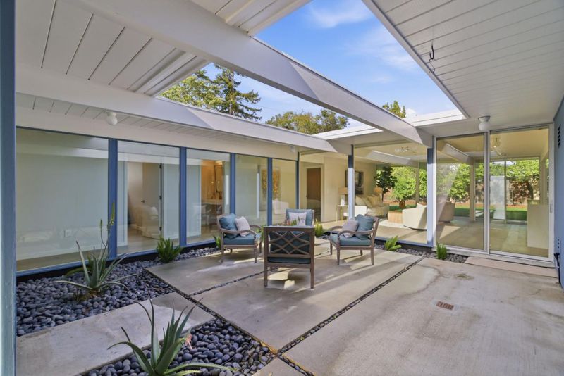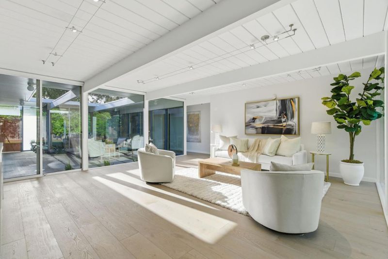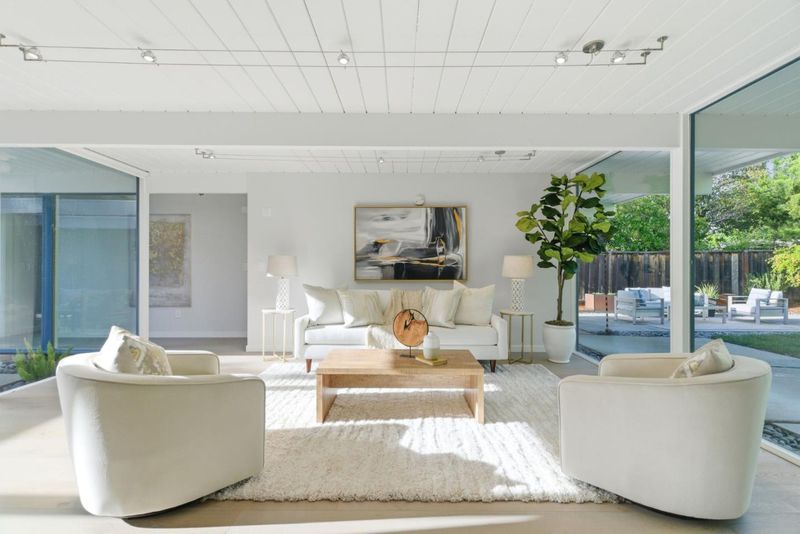 Beautifully remodeled Eichler offering the perfect blend of iconic mid-century design and modern comfort. This 4 bedroom, 2 bathroom home has been thoughtfully updated throughout, featuring a bright open-concept floor plan with seamless indoor-outdoor flow. The fully renovated interior showcases clean lines, expansive dual pane windows, and abundant natural light. The kitchen and living spaces open effortlessly to the backyard, creating an ideal setting for both everyday living and entertaining. New radiant heating provides efficient, comfortable warmth underfoot, while fresh interior and exterior paint make this home truly move-in ready. Step outside to a beautifully landscaped yard with a balance of lush lawn and thoughtfully designed hardscape, offering both relaxation and low-maintenance living. The mature garden provides privacy and a serene backdrop for outdoor gatherings. Situated on a quiet, desirable street in a highly regarded neighborhood, this home is also served by top-rated schools including West Valley Elementary, Cupertino Middle, and Homestead High (buyer to verify). A rare opportunity to own a turnkey Eichler in one of the areas most sought-after communities.
