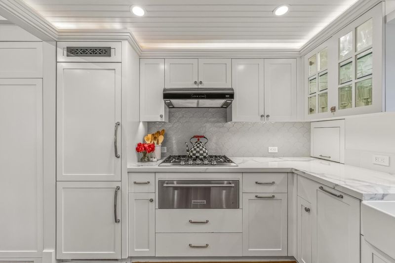 Cooktop - Gas, Countertop - Solid Surface / Corian, Dishwasher, Exhaust Fan, Hood Over Range, Microwave, Oven - Double, Refrigerator