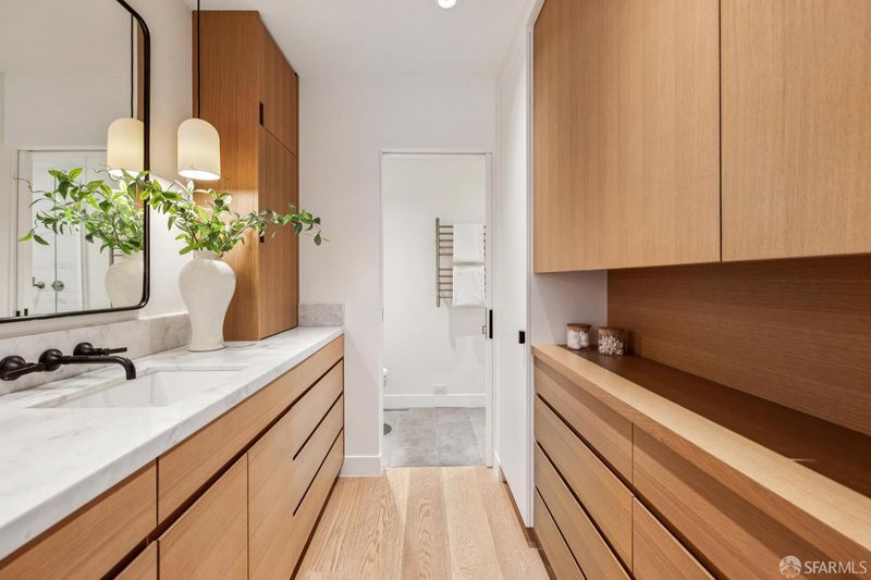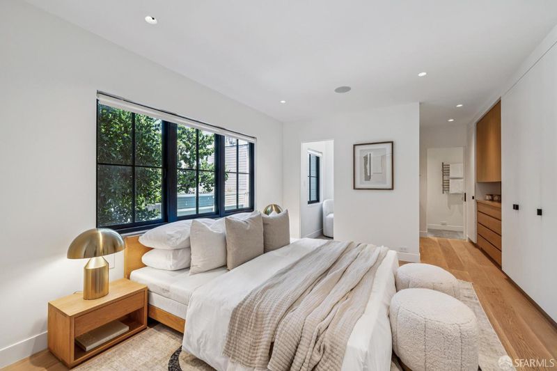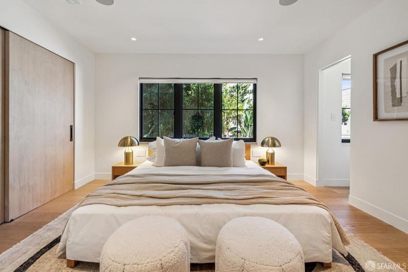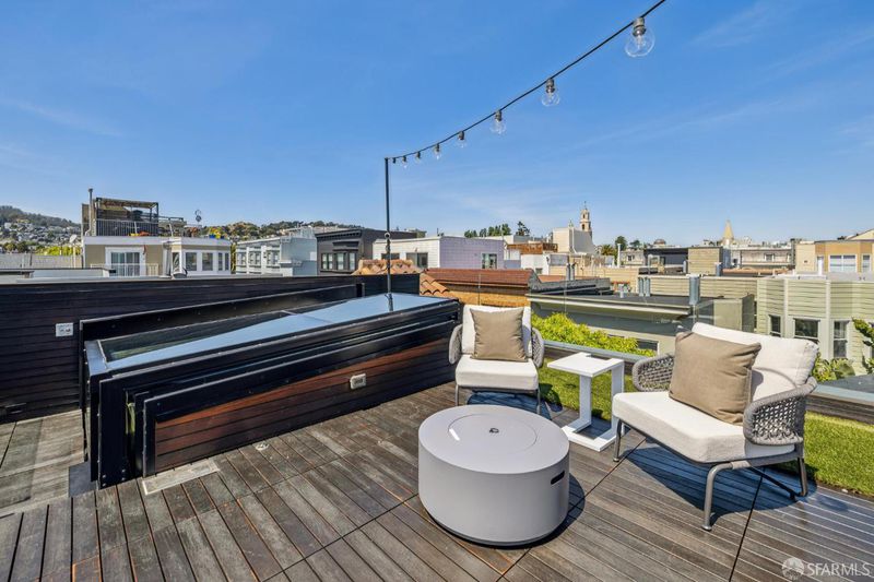 Tucked away on a peaceful cul-de-sac in the heart of San Francisco's coveted Mission Dolores neighborhood, this exquisitely renovated 1930s building blends modern design and cutting-edge luxury living. Just moments from the vibrant energy of Dolores Park and the Valencia Corridor, this rare offering presents a beautifully reimagined property with exceptional versatility and design. The main residence features an efficient layout on two levels with bedroom spaces, flex areas and a dedicated office. Walk up directly to the stunning roof top terrace through a sliding glass-paneled access port in the ceiling above with 360 degree views and all day sun exposure plus outdoor kitchen on the terrace. Opposite, on the lower level of the home one can walk out to a secluded and serene, Zen-like garden retreat complete with a high-end multi-party Bullfrog spa and ample seating. Below as well sits a fully independent studio residence with it's own entrance providing the perfect space for guests, extended family or creative uses galore. The unit walks out to it's own, private and enclosed rear yard in a sunny, south facing position. This is a rare opportunity to own a meticulously upgraded, tech-forward home in one of San Francisco's most desirable neighborhoods. *The secondary and tertiary (smaller rooms) on the first floor above the garage, staged/furnished as bedrooms are, per the seller's architect, seen by the San Francisco Building Department and Planning department as legal living spaces but not as habitable bedrooms.