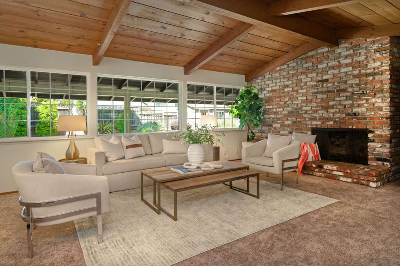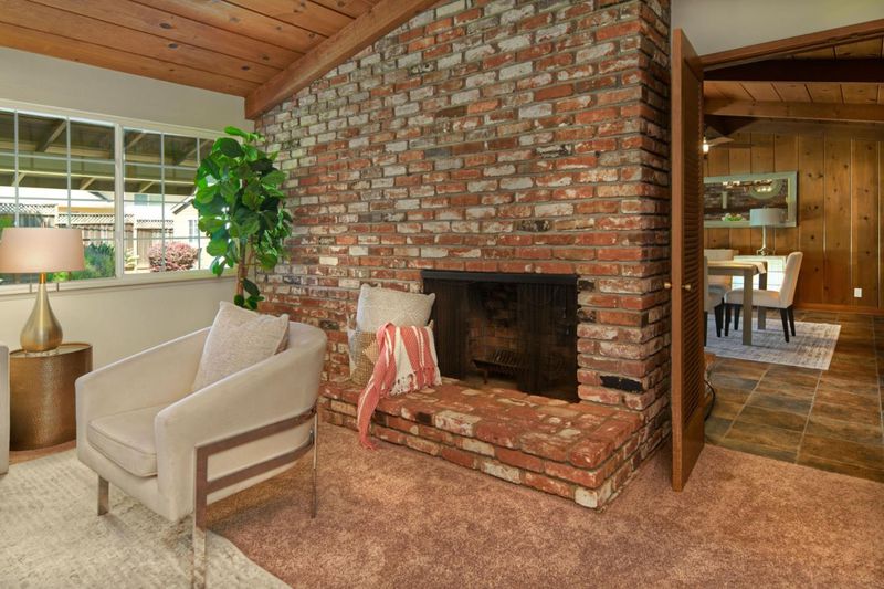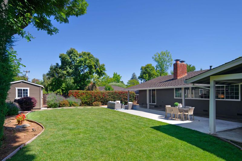 Set on an expansive lot in the desirable Almaden Valley Country Club area blending comfort, charm, and functionality. From the moment you arrive, the home's inviting curb appeal is evident with its curved concrete driveway, manicured lawn, and mature landscaping that creates a warm and welcoming first impression, complemented by a covered front porch that sets the tone for what awaits inside. The interior showcases spacious living areas enhanced by vaulted wood-paneled ceilings with exposed beams, creating an open and airy ambiance, while two cozy wood-burning brick fireplaces serve as stunning focal points in both the living and family rooms. Large windows and sliding doors invite in an abundance of natural light and seamlessly connect indoor and outdoor living. The kitchen offers ample cabinetry, tile counters and backsplash, and a bright dining area, making it both functional and inviting for everyday living and entertaining. Generously sized primary suite with direct backyard access, a walk-in closet, and an en suite bath designed for relaxation. The private backyard is a true retreat, featuring an extended covered patio, a lush lawn, mature landscaping, shed. Ideally located near parks, scenic trails, schools, and local amenities. Top Schools: Williams, Bret Harte, Leland.