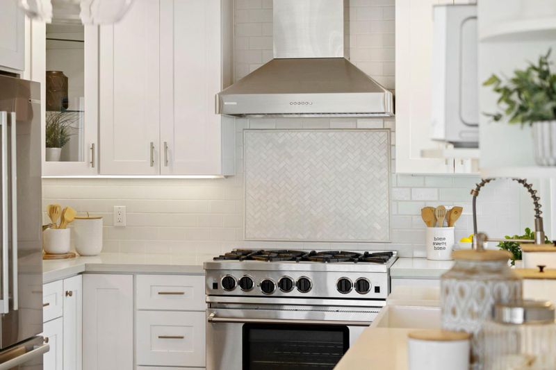 - Dishwasher, Garbage Disposal, Hood Over Range, Island, Countertop - Quartz, Exhaust Fan, Oven Range - Gas, Refrigerator