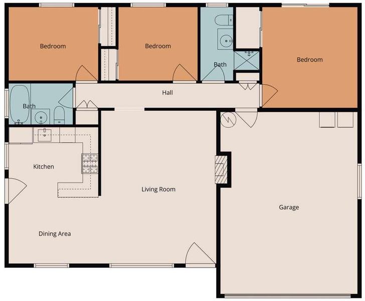 - Eat in Kitchen, No Formal Dining Room