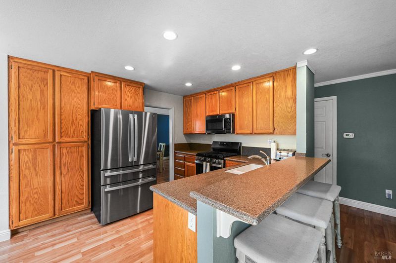 Well-maintained two-story home located on a spacious corner lot in the sought-after Macklin Subdivision. This floor plan offers 3 bedrooms and 2.5 bathrooms, perfectly positioned just south of Putnam Park and minutes from Oliver's Market and Downtown Cotati. The main level features a functional layout designed for everyday living, including a formal dining area and a comfortable family room that features a gas log fireplace and opens directly to the kitchen. For added convenience, the laundry room and a half-bathroom are also located on the main level, and the washer and dryer stay with the property. Upstairs, you will find all three bedrooms and two full bathrooms. Both the primary suite and one of the guest bedrooms feature vaulted ceilings, adding to the home's spacious feel. The generous primary bedroom includes a walk-in closet and an en suite bathroom equipped with a dual vanity and shower. The backyard is designed for both relaxation and utility, featuring a paver patio, lawn, and a dedicated boat or small RV pad (~13'W by ~31'L) with a double-gate (~12'W) for easy access. Being a corner lot, the property benefits from having only one side neighbor and one rear neighbor. Extensive maintenance and upgrades have been completed over the last five years. The sellers replaced the roof and gutters, added gutter guards, replaced the carpet on the stairs and second story, painted the interior and exterior, upgraded the kitchen appliances, and replaced three-quarters of the yard fencing. They also added the dedicated boat/small RV pad. This home offers the perfect opportunity to enjoy the best of Cotati living, with easy access to local parks, community events, and the vibrant downtown scene just moments away.
