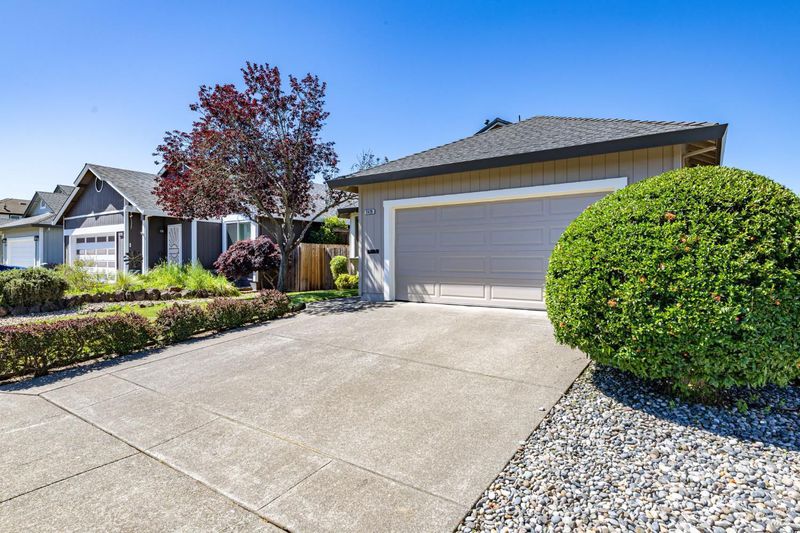 Single-level home in a well-established northwest neighborhood offering 3 bedrooms and 2 full bathrooms across approximately 1,335 sq ft, built in 1990. The kitchen features vaulted ceilings, ample cabinet space, and a breakfast nook. The living and dining areas also have vaulted ceilings, a fireplace, and a sliding door that opens to a private back patio. The primary suite is spacious with vaulted ceilings, and the laundry room is conveniently located just off the garage with additional cabinetry for storage. The two-car garage includes built-in workbenches and cabinets. Fresh interior and exterior paint. The backyard is designed for easy upkeep, with a large patio, wisteria-covered trellis, and a storage shed. Conveniently located near Oliver's Market, A Place to Play Park, and just a short drive to Sebastopol for additional shopping and dining. Easy access to Highways 12 and 101. The home also has a certified clear pest report.