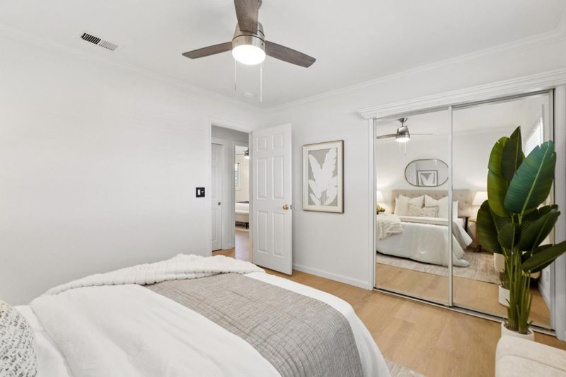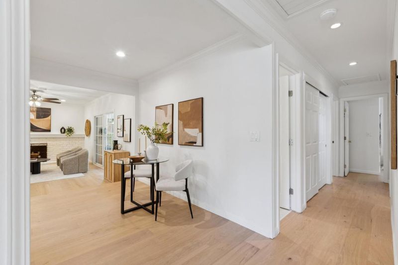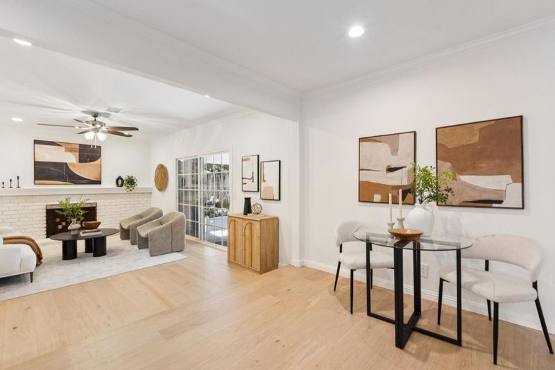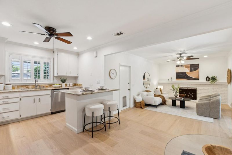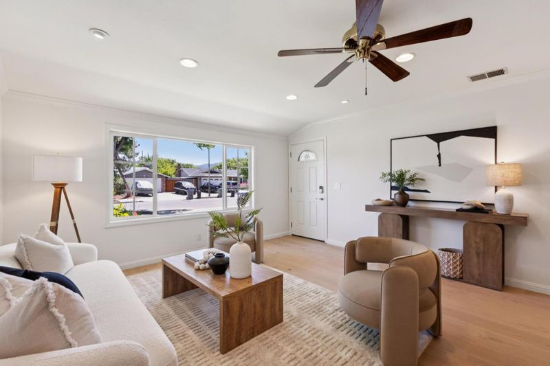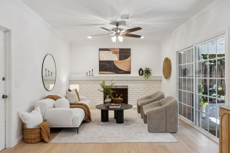 Set on a spacious corner lot in Almaden Valley, this inviting single-story home showcases beautiful curb appeal with vibrant roses, a lush green lawn, and mature landscaping. Inside, a bright, freshly painted interior is complemented by new engineered hardwood flooring and a comfortable yet functional layout. The living room is filled with natural light and overlooks the front grounds, while the dining area connects easily for everyday meals and gatherings. The kitchen features granite countertops, stainless steel appliances, and an island with breakfast bar seating, plus a bright breakfast nook. The family room is anchored by a brick surround wood-burning fireplace, with sliding glass doors opening to the backyard. Three bedrooms include a primary suite with backyard views. Bathrooms have been recently updated with beautiful tiled shower and flooring. Outdoor space shines with a covered patio, sparkling pool with diving board, and a large side yard with fresh landscaping. Additional highlights include an attached two-car garage and owned solar. Conveniently located near Costco, Trader Joes, Whole Foods, Oakridge Mall, Highway 85, and nearby schools, with parks and trails just moments away...