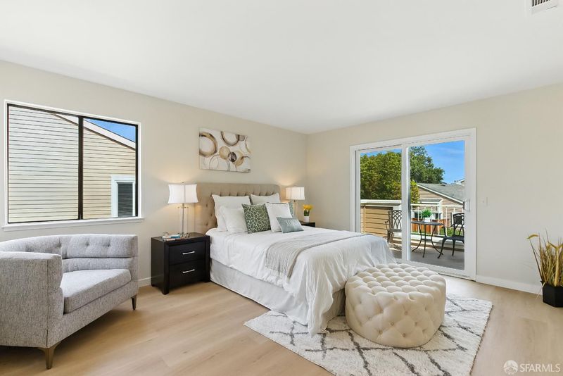 Transparent price. This beautifully updated single family house offers style, comfort and privacy in a serene gated community. Fresh interior paint and brand-new, gorgeous vinyl flooring flow throughout the entire home. The main floor features a spacious living room with soaring ceilings, opening to a brand-new deck perfect for relaxing or entertaining. A separate dining area is filled with natural light from large windows, and the kitchen provides abundant cabinet space. A remodeled half bath is conveniently located on this level. Upstairs, you'll find two primary suites each with updated bathrooms positioned on opposite sides of the hallway for enhanced privacy. The large, side-by-side two-car garage offers ample storage space in addition to parking. Residents enjoy access to on-site amenities including a swimming pool, community center, and tennis court. HOA covers roof, fencing, garage door, exterior paint, dry rot repair and landscaping maintenance. This home is also conveniently located near the highway, Costco, and Colma shopping centers, offering easy access to commuting routes, shopping, and everyday essentials.