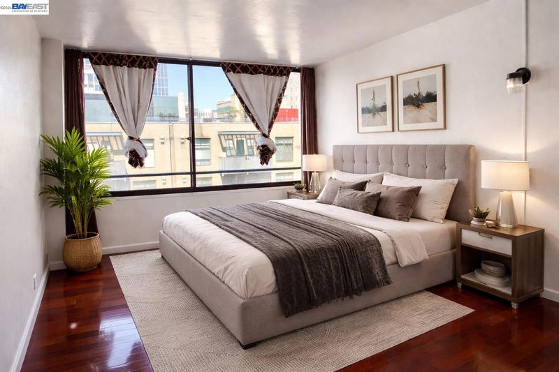 Great opportunity to live in this convenient location in Oakland's vibrant Chinatown. Spacious patio with sliding glass doors off the living room to make your own private garden oasis. Close to 12th street BART, public transit, Jack London Square, Lake Merritt, local shops and restaurants. Low HOA fees that includes 24/7 front door security, professional onsite management water, gas, sewer, garbage service and laundry facility onsite. Unit has one assigned gated parking space fits 2 cars. The best of urban living!