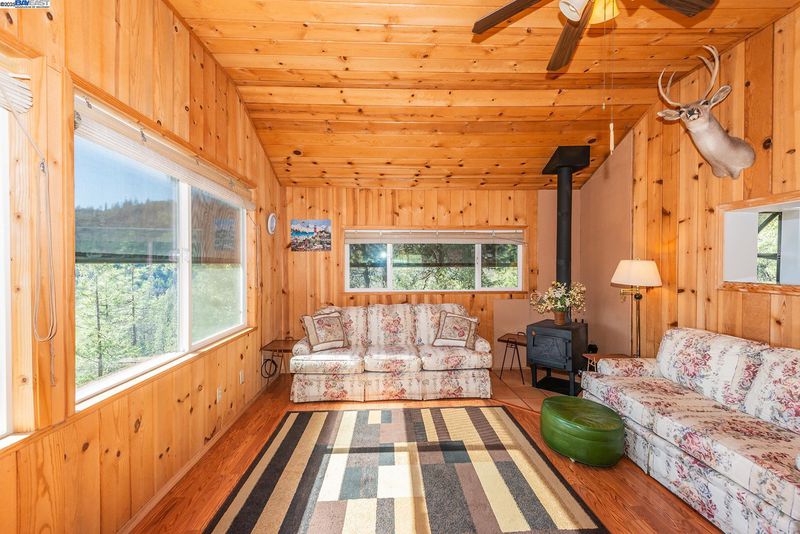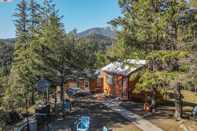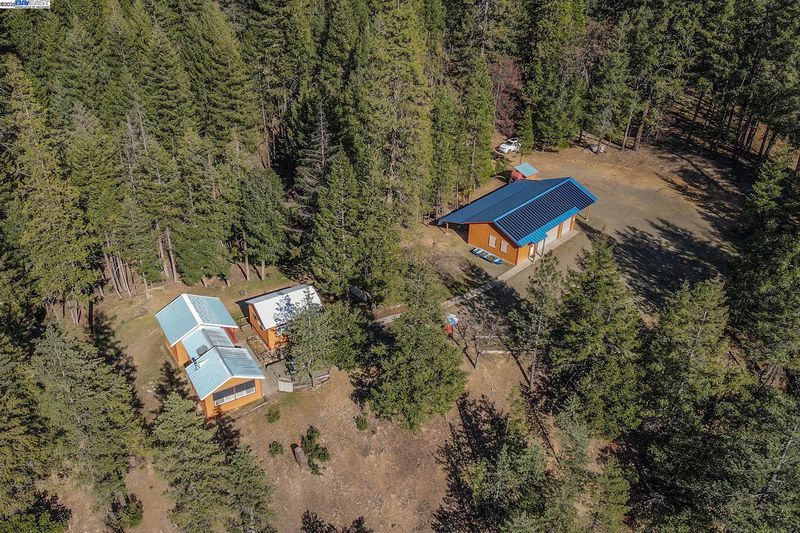 Million Dollar View, Perched above Trinity Lake, 12 plus acres surrounded by USFS land. Three separate cabins, each including Full Bathrooms, Main Cabin on property is approximately 786 sq. Ft. with Living Room, Kitchen, Bedroom and Full Bath, includes large basement where Washer & Dryer and Second Refrigerator are located, along with plenty of storage & a separate basement where Solar Electronics & Batteries are located. all with Spectacular Views of the lake and Trinity Alps. Middle cabin is approximately 320 sq. Ft. Sleeps 6 also with Full Bath. Third Cabin comes with Bedroom that sleeps 4 and includes a Full Bathroom. Huge 3-car garage that is attached to the third cabin & featuring a covered RV/Boat carport, also connected is 840 sq. Ft. of covered storage along backside of garage. All three Cabins come fully furnished. Large back-up Generator and approx. 8,000 gallons of Spring-fed water storage allows this incredible property to be fully self-contained. Also has 500 gallon Propane tank that is owned