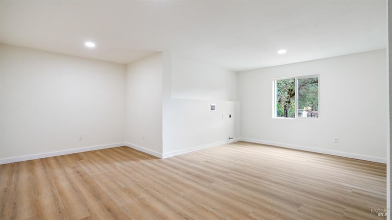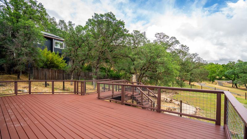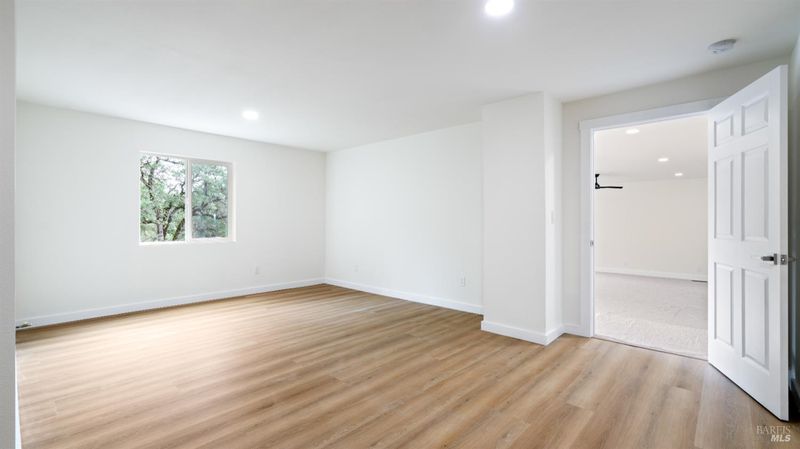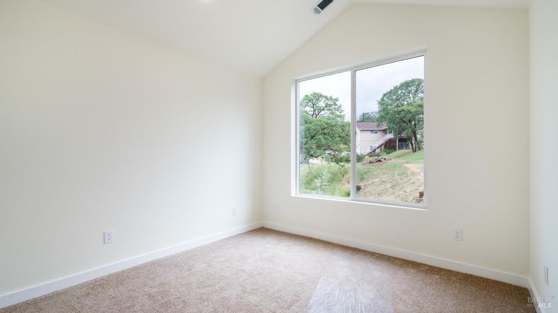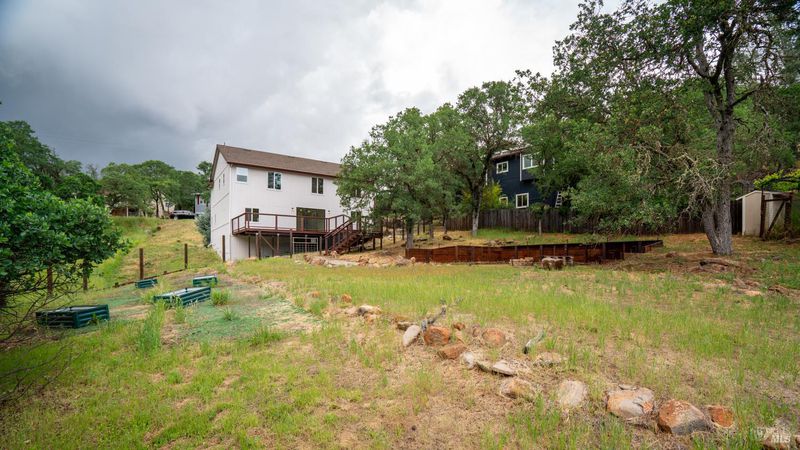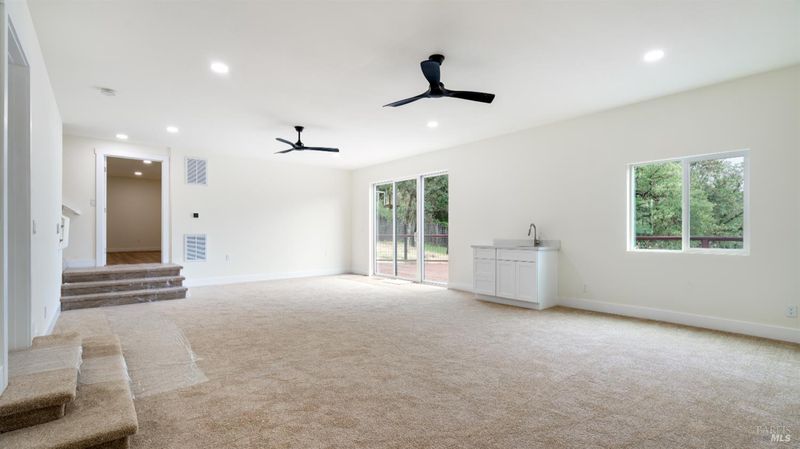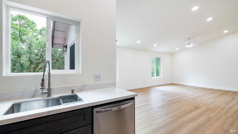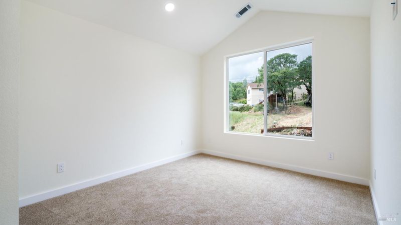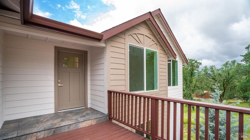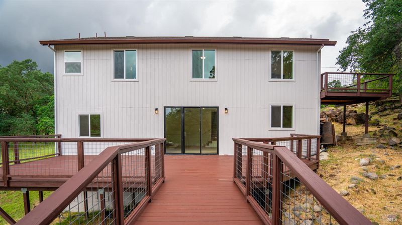 Set on over a third of an acre along one of Hidden Valley Lake's more scenic stretches, this extensively rebuilt home offers scale, privacy, modern finishes, and direct connection to the outdoors and recreation. Rebuilt with permits following prior fire damage, the home lives with the feel of brand new construction, with updated major systems and a fully refreshed interior which brings a high level of comfort, ease, and beautiful finish quality. Spanning approximately 2,856 square feet, the layout is both generous and thoughtfully arranged. Entry is at street level, where the main living spaces unfold with a light, bright, open feel. The kitchen has been graced with quartz countertops, stainless steel appliances, and clean, modern finishes, opening to the great room in a way that supports both everyday living and effortless gathering. Also on this level are three bedrooms, including one suite, offering flexibility for guests, extended family, or a comfortable home office setup, along with the convenience of the attached two-car garage. Downstairs, the home opens into an entirely different layer of livability. The primary suite is spacious and privately positioned, creating a true retreat within the home. A large media room or den with wet bar adds meaningful flexibility, whether used for movie nights, game-day gatherings, a relaxed secondary living area or pool table/ ping-pong set up. An additional spacious bonus room near the laundry area offers even more versatility for a home gym, studio, office, or craft space. Extensive improvements include new kitchen and baths, new carpet, new LVP flooring, recessed lighting throughout, and updated major systems including heating, cooling, and water heater. The result is a home that feels cohesive, fresh, and ready to enjoy from day one. Outside, the setting continues to impress. A large back deck expands the living space outdoors, while the thoughtfully set up backyard includes hardscape, a patio with fire pit, garden areas, mature trees, a chicken coop, and storage shed. The rear gate opens to Boggs Mountain Demonstration State Forest, creating immediate access to hiking, mountain biking, and the kind of natural setting that makes this property feel like more than just home. For buyers seeking space, new condition, and a more elevated lifestyle experience, this is a compelling opportunity in Hidden Valley Lake. Welcome home.