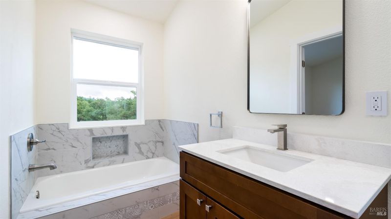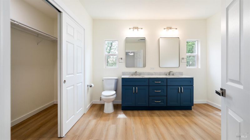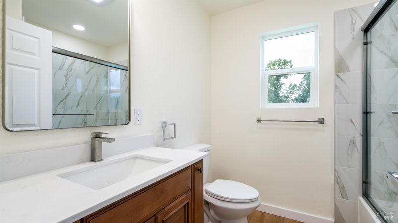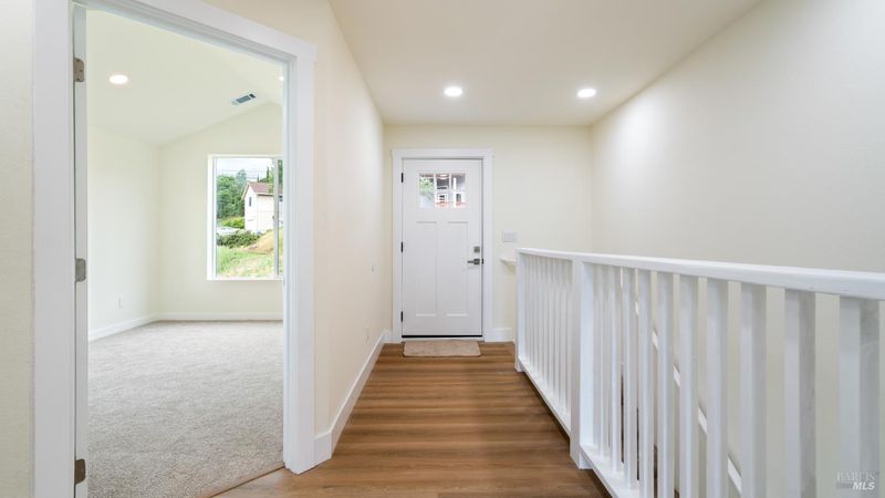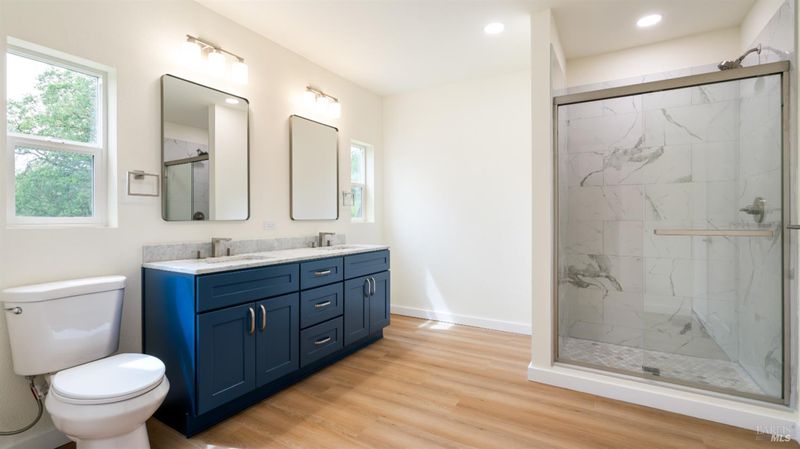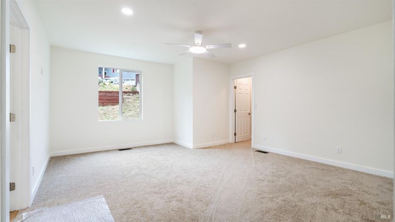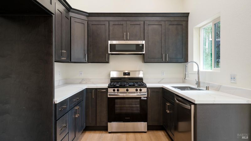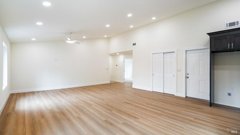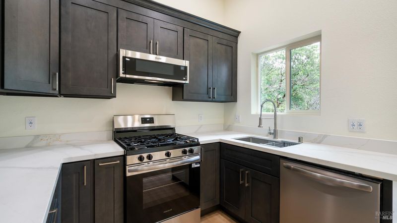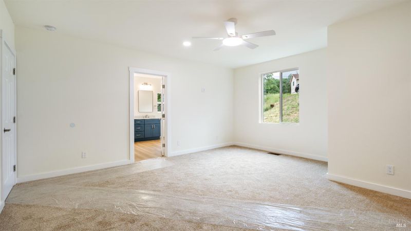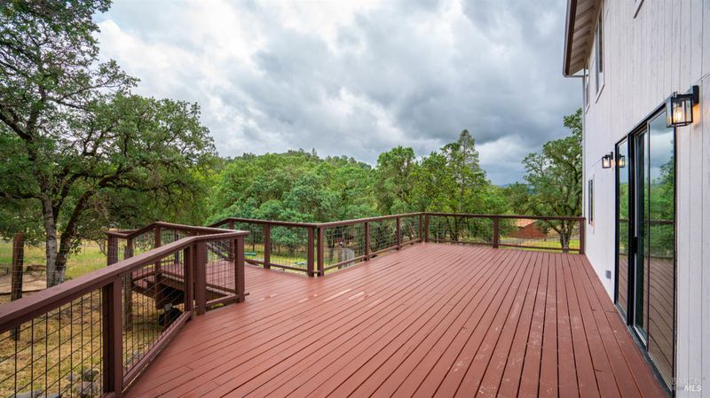 Set on over a third of an acre along one of Hidden Valley Lake's more scenic stretches, this extensively rebuilt home offers scale, privacy, modern finishes, and direct connection to the outdoors and recreation. Rebuilt with permits following prior fire damage, the home lives with the feel of brand new construction, with updated major systems and a fully refreshed interior which brings a high level of comfort, ease, and beautiful finish quality. Spanning approximately 2,856 square feet, the layout is both generous and thoughtfully arranged. Entry is at street level, where the main living spaces unfold with a light, bright, open feel. The kitchen has been graced with quartz countertops, stainless steel appliances, and clean, modern finishes, opening to the great room in a way that supports both everyday living and effortless gathering. Also on this level are three bedrooms, including one suite, offering flexibility for guests, extended family, or a comfortable home office setup, along with the convenience of the attached two-car garage. Downstairs, the home opens into an entirely different layer of livability. The primary suite is spacious and privately positioned, creating a true retreat within the home. A large media room or den with wet bar adds meaningful flexibility, whether used for movie nights, game-day gatherings, a relaxed secondary living area or pool table/ ping-pong set up. An additional spacious bonus room near the laundry area offers even more versatility for a home gym, studio, office, or craft space. Extensive improvements include new kitchen and baths, new carpet, new LVP flooring, recessed lighting throughout, and updated major systems including heating, cooling, and water heater. The result is a home that feels cohesive, fresh, and ready to enjoy from day one. Outside, the setting continues to impress. A large back deck expands the living space outdoors, while the thoughtfully set up backyard includes hardscape, a patio with fire pit, garden areas, mature trees, a chicken coop, and storage shed. The rear gate opens to Boggs Mountain Demonstration State Forest, creating immediate access to hiking, mountain biking, and the kind of natural setting that makes this property feel like more than just home. For buyers seeking space, new condition, and a more elevated lifestyle experience, this is a compelling opportunity in Hidden Valley Lake. Welcome home.