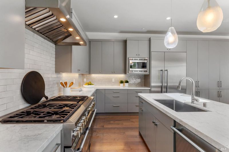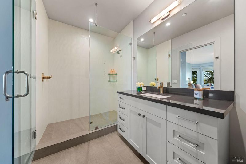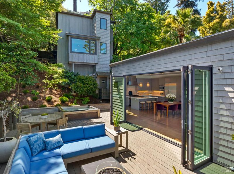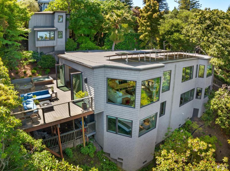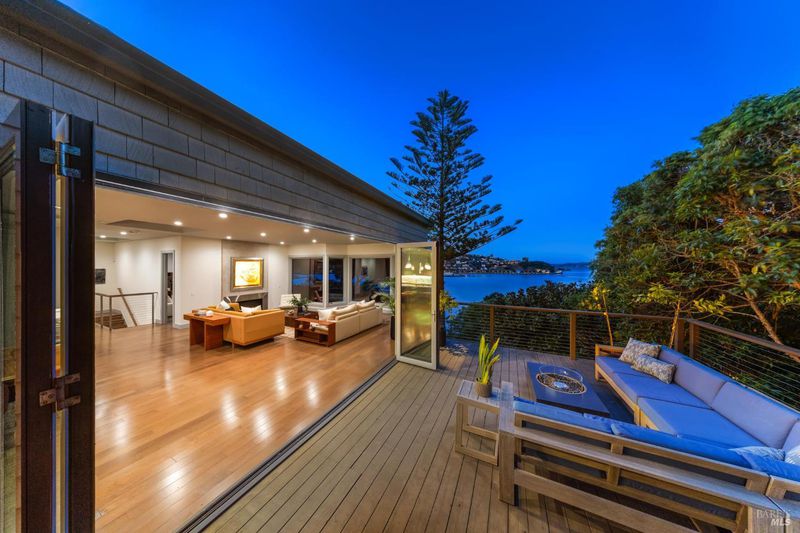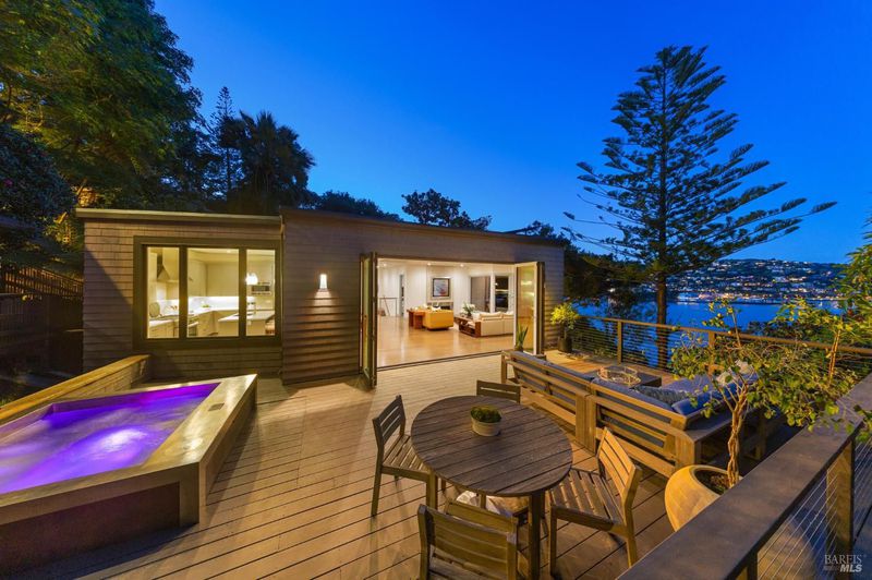 Located on coveted Beach Road--one of the most sought-after locations on Belvedere Island--this exceptional residence offers expansive Bay views, effortless indoor-outdoor living, and a fully renovated, exceptional design just moments from town. Recently reimagined with chic, modern finishes and a major renovation, the home is designed for easy living and elegant entertaining. The light-filled great room, with cozy fireplace and open-concept chef's kitchen, flows seamlessly to the outdoors. Retracting glass walls open to a newly expanded deck complete with hot tub--perfectly positioned to capture the sweeping water views. With an ideal floor plan, the main level features a relaxing primary suite with panoramic Bay vistas, spa-like bath with soaking tub and walk-in shower, and an additional bedroom or office with its own bath. The first level offers three additional bedrooms--one currently used as a gym--along with a spacious family or media room, providing flexibility for your own lifestyle. A detached guest suite with full bath and wet bar offers ideal accommodations for guests, office, or au pair. An elevator provides an optional stair-free, convenient access to both the guest suite and the spacious two-car garage. Additional highlights include beach access, a newer roof with solar panels, and gorgeous garden areas. Filled with natural light and designed to maximize its spectacular setting, this is a rare opportunity to enjoy turnkey luxury in one of Belvedere's most cherished locations.