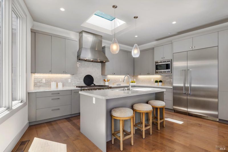 Breakfast Area, Island w/Sink, Pantry Cabinet, Skylight(s), Slab Counter