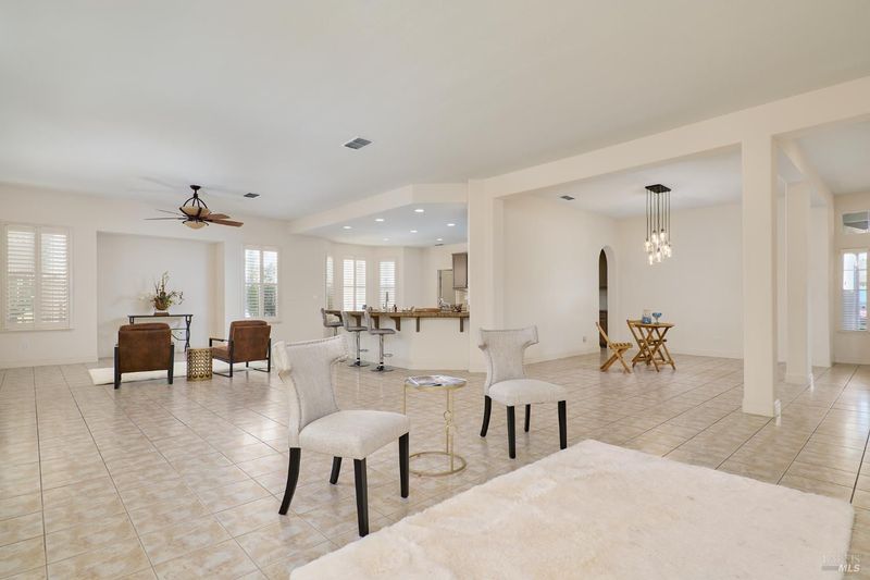 The Yountville is one of the larger plans here in Trilogy at Rio Vista. With over 2500 square feet, this home lives grand. With tile floors through major living areas, granite counters, and a huge patio cover in the back, you will love the substantial spaces. Walk in to the designated dining area that leads to adjoining living room with a cozy fireplace and family room with big entertainment niche. The kitchen has granite counters with a large peninsula with counter for barstools and an island in the center. There is also a breakfast nook aside that leads to the laundry room and huge 3 car garage with cabinetry and workbench. The windows and patio doors are adorned with shutters for an upscale feel. The primary bath has a soaking tub with two separate sinks and shower. The guest wing has a 1/2 bath for guests and an office and full bath that lead to a second bedroom. Trilogy is a 55 and over community with tons of amenities including 2 clubhouses, indoor and outdoor pools, a health and wellness center with gym and spa, a cafe and restaurant, tennis and bocce courts, and about 100 clubs to keep active. Trilogy at Rio Vista is built around a Ted Robinson designed 18 hole golf course. HOA dues do not include golf play.