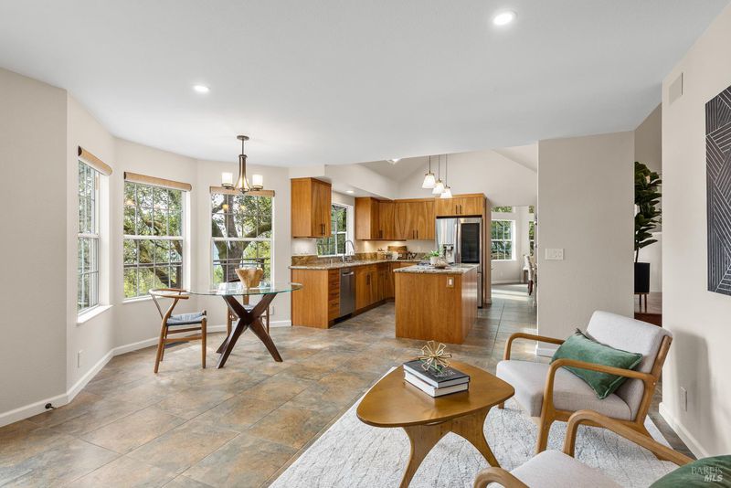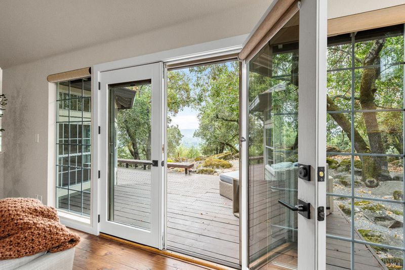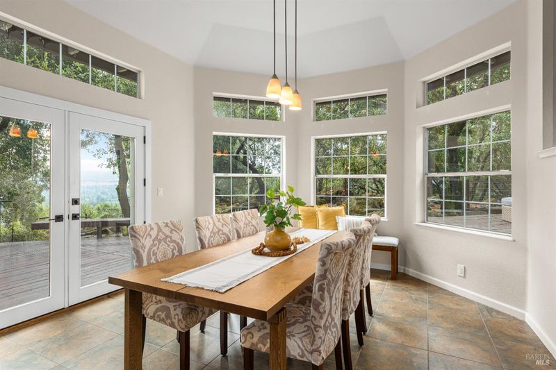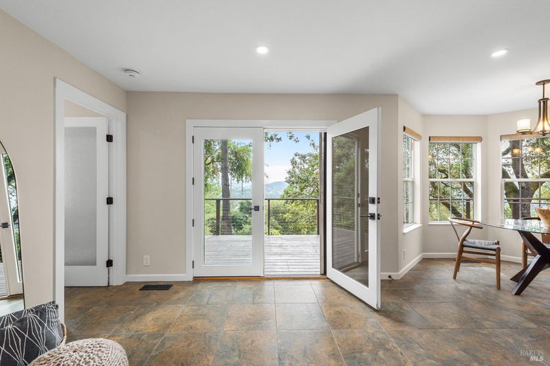 This beautifully updated multi-level home offers easterly-facing views, elegant indoor-outdoor living, and exceptional privacy. Surrounded by lush, professionally and naturally landscaped grounds and backing to open space, this hilltop retreat captures the essence of Wine Country living. Natural light emphasizes the open layout and scenic surroundings. Enjoy both a formal living room and a separate family room. The updated kitchen has plenty of workspace, energy efficient appliances and beautiful custom cherry cabinets with granite countertops. There is a bedroom/office and full bathroom on the main level. The bathrooms feature high-end finishes, while the spa-inspired primary suite includes expansive views and luxury finishes and fixtures. A versatile extra space adds flexibility for a home office, gym, or media room. With thoughtfully designed living spaces, refined updates throughout, and views that stretch for miles, this is an opportunity to own a peaceful, move-in-ready retreat in one of Santa Rosa's most desirable locations.