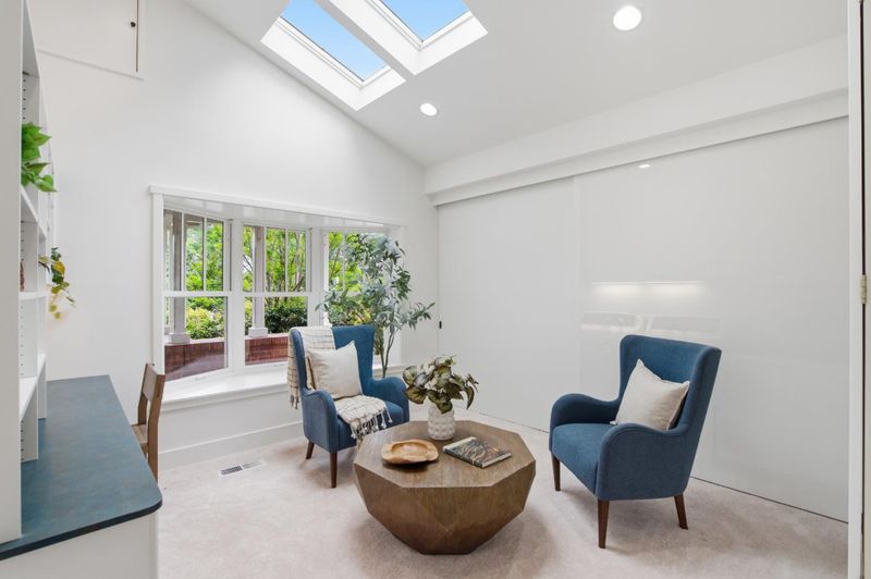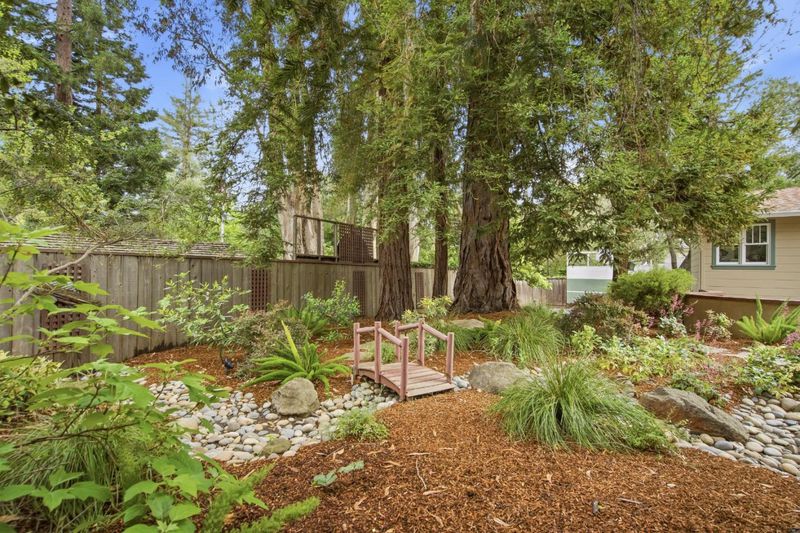 Tucked down a peaceful private lane in West Menlo Park, this 2-story Craftsman home was expanded and reimagined with impeccable quality and design. Custom built-ins, vaulted ceilings with exposed rafters and wood beams, distinctive slate tiles, oak hardwood floors, and skylights create an elevated living experience. Designed by architect, Carl Hesse, there are 5 spacious bedrooms, 6 baths, including 3 full baths, 3,320 sqft of living space on a 11,137 sqft lot. The ground floor primary suite has a dual vanity sink, walk-in closet, and French doors opening to the back patio. The large open kitchen has extensive cabinetry, center island, bar seating, and an adjacent space for entertainment or dining. An inviting living room, office, 2nd bedroom, 2 half-baths, wet bar, and formal dining room complete the first floor. Upstairs is an en-suite bedroom with balcony and 2 additional bedrooms and full bath. Surrounding this enchanting home are mature gardens and towering Redwood and Eucalyptus trees. There's no shortage of outdoor spaces with 2 patios for al fresco dining and relaxing outdoors, a sport court, and a workshop or storage shed with half-bath. Award-winning Las Lomitas Schools.