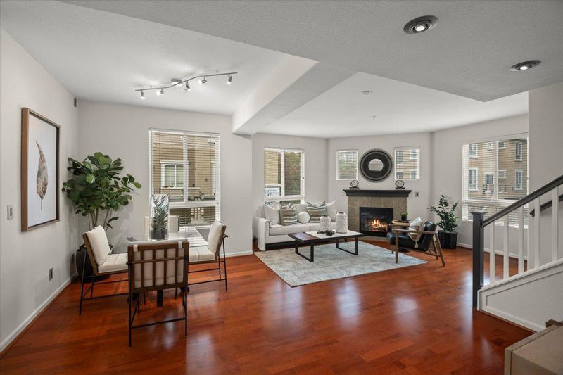 End-unit townhome in Lancaster Gate at the base of Communications Hill. Three ensuite bedrooms with walk-in closets, including a main-level suite and two additional suites on second level. The primary with vaulted ceilings, fireplace, and private balcony. Living room with tall ceilings, dining room and abundant light, tons of windows, and French door to balcony. Kitchen includes stainless appliances, gas cooktop, granite counters, casual eating area and glass sliding door to side entrance. Double pane windows, central A/C and 2 car attached garage. Steps from the renowned Comm Hill Grand Staircase, scenic walking and biking trails, and neighborhood parks with playgrounds. The community enhances your lifestyle with a sparkling pool, relaxing spa, and low HOA fees, while its prime location provides easy access to VTA Light Rail, Caltrain, downtown San Jose, shopping, and freeways 87, 85, 280, and 101.