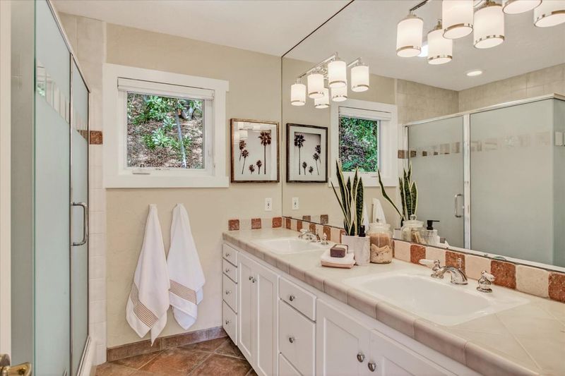 - Double Sinks, Full on Ground Floor, Primary - Stall Shower(s), Shower over Tub - 1, Solid Surface, Stall Shower, Tile, Updated Bath